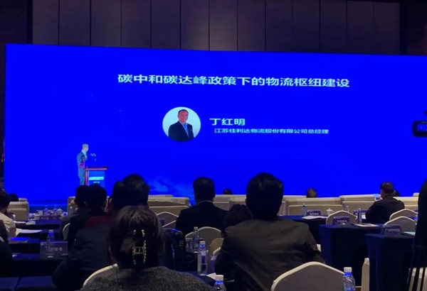 会上,丁总代表公司发表了题为“碳达峰碳中和政策下的物流枢纽建设”的专题演讲,讲述了物流企业的社会责任及新物流枢纽建设的设想。