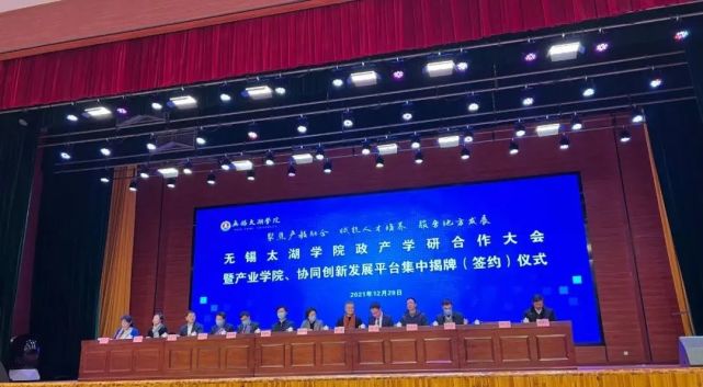 12月28日下午,无锡太湖学院政产学研合作大会暨产业学院、协同创新发展平台集中揭牌(签约)仪式在太湖学院举办,本次大会旨在促进产教融合,赋能人才培养,更好地促进无锡地方产业发展。